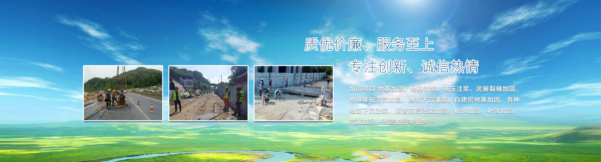 地质新科工程专业从事加固项目:地基加固、地基注浆、高压注浆、房屋裂缝加固、地基基础下沉加固、建筑下沉灌浆、自建房地基加固、各种地面下沉注浆、顶管前后注浆加固、粘钢加固、补强加固、抗震加固、改造加固等业务。公司拥有自己专业的技术和丰厚经验,在技艺功法方面有多项项目案例支撑。 我们秉承专业的技术,优良的服务,赢得了客户的称赞和信赖,本公司将不断向前,开拓进取,服务于全国各地,欢迎各界同仁咨询洽谈业务!!!